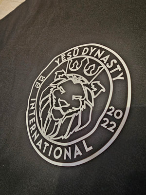Tee: White “YESŪ DYNASTY INTERNATIONAL” crest on front